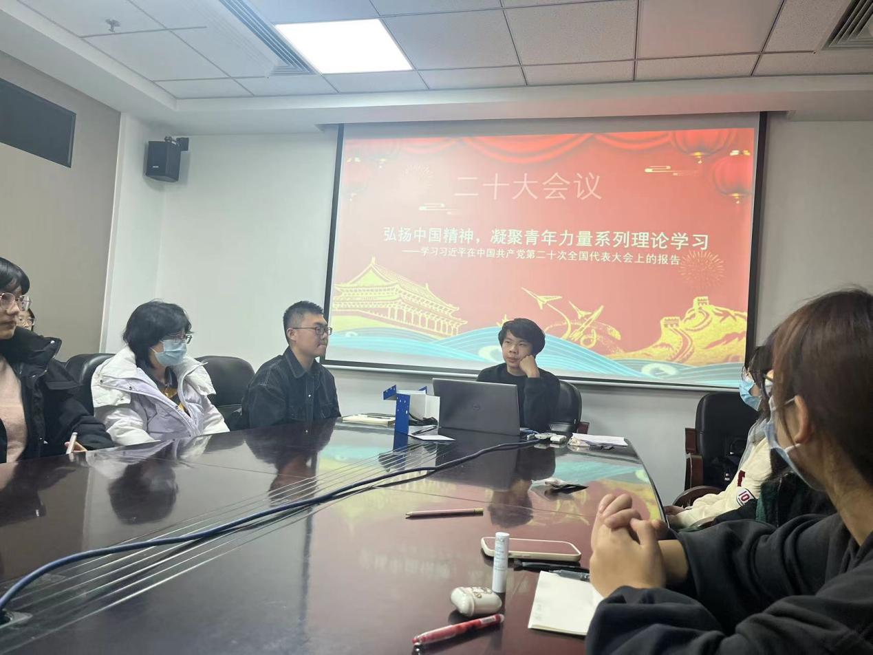 本次主题团课分为三部分:学习解读、讨论环节、总结环节。开始阶段,各班团支书对习近平总书记的二十大报告展开解读。王梓(2022级本科生)着重带领大家学习大会主题和重要内容,介绍了中国式现代化的基本方向与基本路径。毕妍欣(2022级本科生)对材料中提到的过去五年的工作和新时代十年的伟大变革进行深入解读。交流互动环节中,姜欣彤(2022级本科生)认为同学们应当坚定马克思主义信仰,将中国特色社会主义理论知识贯穿于我们的生活实践之中。孙明(2022级本科生)表示同学们应当认真学习,日后为民族复兴贡献自己的力量。刘婷婷(2022级本科生)鼓励同学们要坚定不移听党话、跟党走,怀抱梦想又脚踏实地。