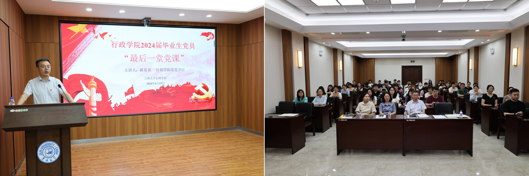 学院党委书记陈希贵始终高度重视学生党员队伍建设,亲自参与学生党员教育管理帮扶激励,与学生入党申请人和新发展学生党员谈话耐心细致、语重心长。毕业在即,陈希贵再次走上讲台,为毕业生党员讲授毕业前“最后一堂党课”。陈希贵领学习近平总书记关于纪律建设的重要论述,分享部分“七一勋章”获得者事迹,剖析党员与群众的辩证关系,勉励毕业生党员对党和人民要忠心耿耿、对工作要尽职尽责、对群众要满怀真情、对成绩要谦虚谨慎。“最后一堂党课”寄托了学院党委对毕业生党员的殷切希望,陈希贵向毕业生党员提出三点希望,要坚定理想信念、常固理论根基、严守党规党纪,做政治上的“明白人”;二是高度珍视组织关系,要及时办理转接、妥善保管档案、过好组织生活,做支部里的“正规军”;三是带头发挥模范作用,要培养高尚情操、提高业务能力、彰显吉大风采,做社会中的“排头兵”。