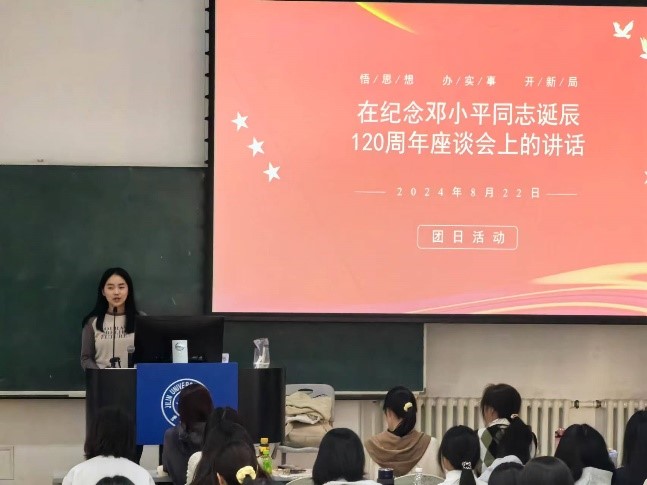 最后,陈艺尹(2022级本科生)对活动进行了总结。她指出,邓小平同志的理论和实践为我们提供了宝贵的经验和方法论,每位团员青年都应该将这一理论作为行动指南,将个人发展融入国家和民族的伟大事业之中。