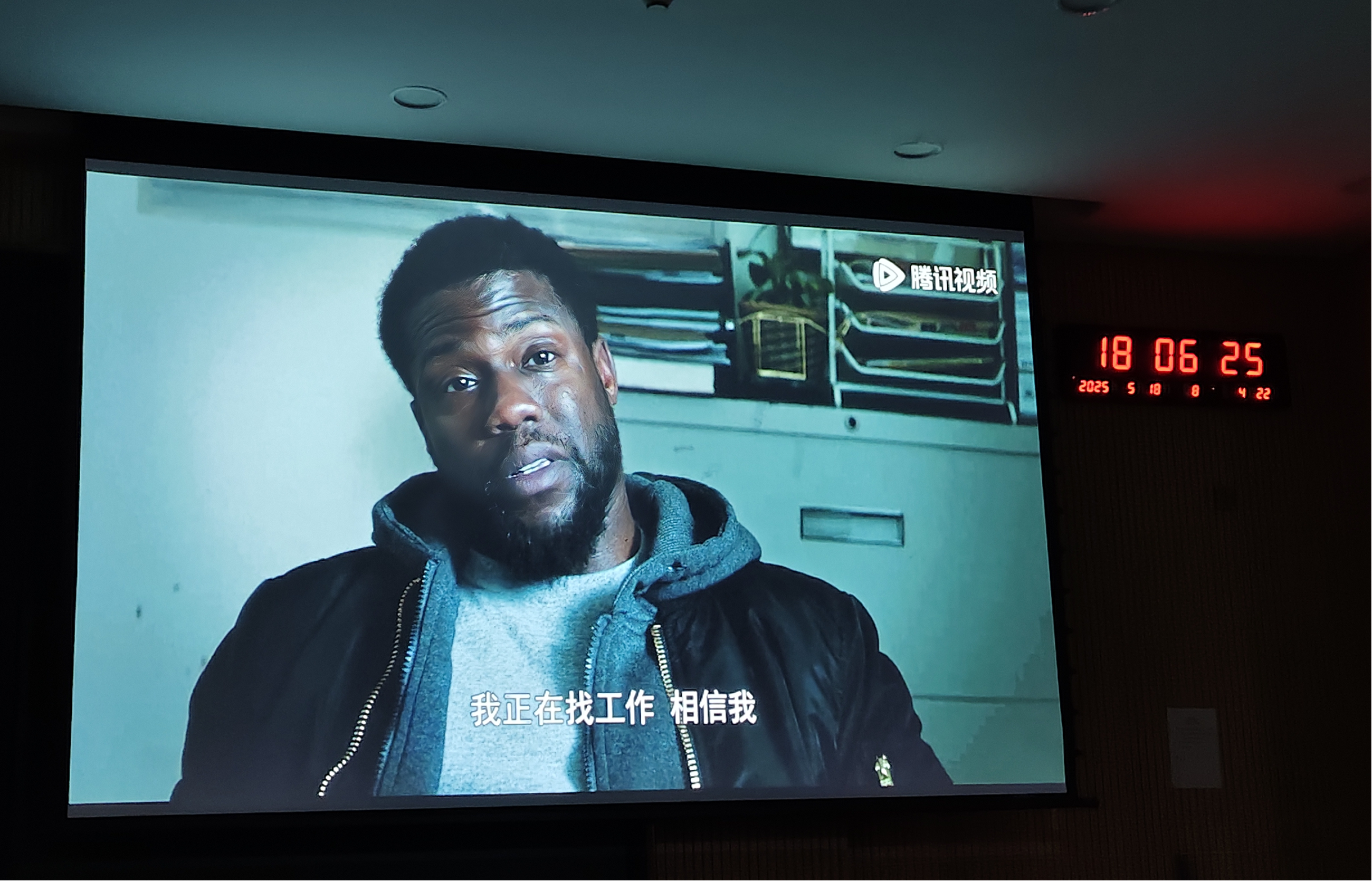 沉浸式感受剧情张力,影片播放过程中,同学们随情节发展进入电影世界:戴尔的直率打破菲利普的封闭世界,两人在碰撞中逐渐消解偏见的情节引发共鸣,画面中巴黎街头的文化景观、人物对话中的语言张力,让整个现场氛围轻松愉快,大家因为戴尔的幽默开怀大笑,因为菲利普的痛苦安静沉默。