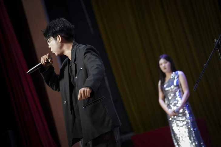 刘祉含、赵梓含两位同学带来歌曲《夜的第七章》。墨色,或许是此刻舞台的基调;谜团,或许增萦绕在研究的深夜。然而,今夜不同,第七章不再是未解的困局,我们即将启程奔赴的广阔天地,就让我们在旋律中感受这份探索的深邃。