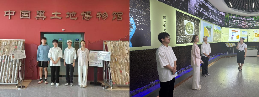 团队成员来到吉林省四平市梨树县黑土地博物馆开展社会实践。为直观感受“梨树模式”的实际应用效果,团队利用博物馆内相关样本进行观察与简易实践操作。在技术人员指导下,分别在采用“梨树模式”的地块与传统耕作地块,通过肉眼观察土壤颜色(黑度差异)、团粒结构(松散程度),并对比土壤含水量,观察两组样本的直观差异,理解秸秆还田对土壤物理性状的改良作用。学习农户使用免耕播种机、秸秆粉碎还田机的操作过程,感受现代农业技术对提高耕作效率、保护土壤的作用。