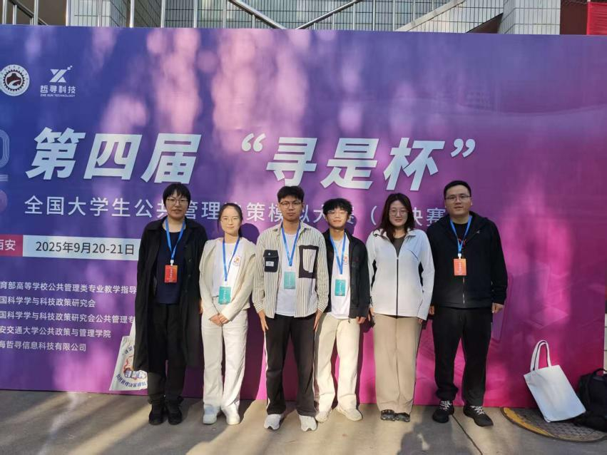 参加第四届“寻是杯”全国大学生公共管理决策模拟大赛总决赛。大赛由教育部高等学校公共管理类专业教学指导委员会指导、中国科学学与科技政策研究会主办、中国科学学与科技政策研究会公共管理专业委员会协办、西安交通大学公共政策与管理学院承办、上海哲寻信息科技有限公司提供技术支持。来自全国各地100所高校的近500位师生参赛,16位公共管理学科的知名专家学者担任大赛评委。