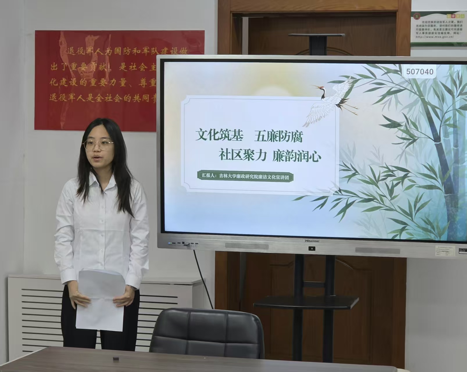 随后,宣讲团成员、2024级研究生王琪主讲廉洁文化,以《文化筑基,五廉防腐;社区聚力,廉韵润心》为题,系统讲解了ManHub