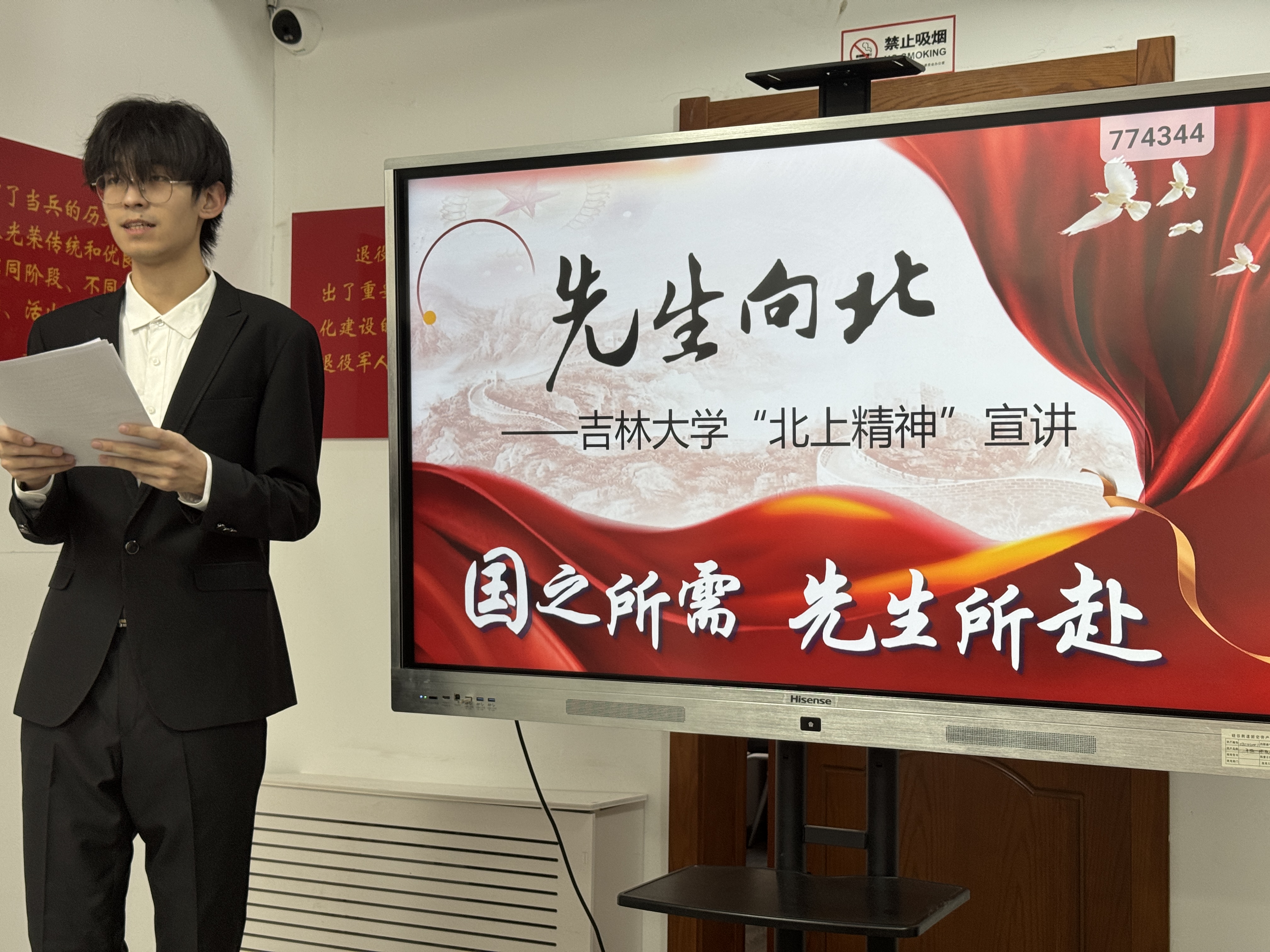 宣讲现场,宣讲团成员、2024级行政管理本科生徐赫健以《在白山黑水间赓续东北抗联精神》为题开展宣讲,系统讲述以“坚定的革命信念、高尚的爱国情操、伟大的牺牲精神”为核心的东北抗联精神,回顾东北抗联将士在极端艰苦条件下坚守阵地、奋勇抗敌的英雄史诗。同时,结合ManHub