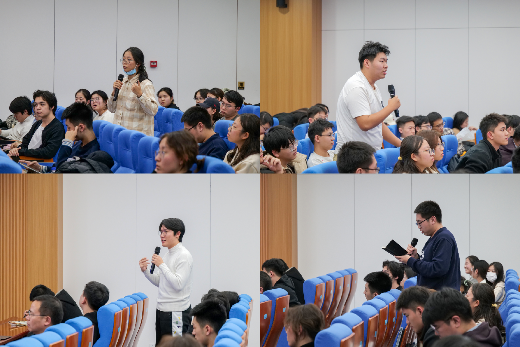在交流环节,同学们积极参与互动讨论,就国家领土认同的形成路径、哲学与政治学融合方式以及如何选择适合自己的研究方向等问题与周光辉教授进行了交流。