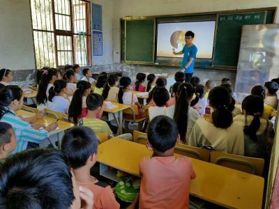 支教团的目的地——金西完小学位于贵州省铜仁市松桃苗族自治县金龙村。群山之中的校园吸吮着大山的气息,现代化的痕迹寥寥。落后的教学条件虽然引人关注,但更加触动支教团师生的是孩子们眼神里透出的单纯、好奇和勃勃生气。一个多月的细致准备为教学工作的顺利进行打下了良好基础,但是较大的年级跨度以及孩子们参差不齐的学习基础让支教团师生感到责任重大,同时也为孩子们的学习情况担心非常。他们意识到地区相对落后的现状决定了只有努力让孩子们自己把学习重视起来,才能更加进步,才能拥有更多人生的选择。