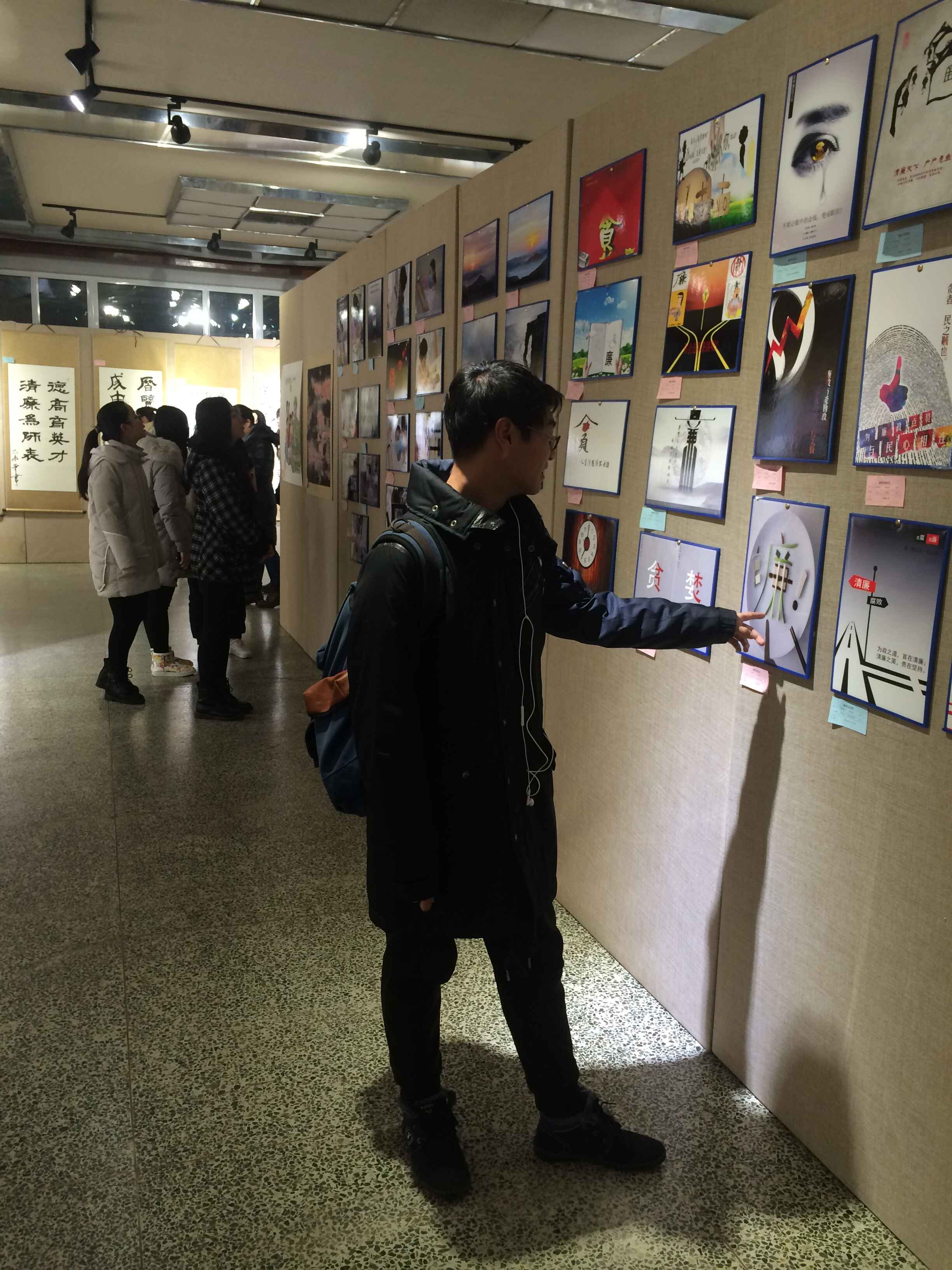 教职工与学生原创。展会上,书法作品苍劲有力,仿佛将廉洁公正融入笔墨之中。绘画作品或意境深远,或诙谐幽默,体现了作者对廉政文化的深刻理解。本院党员和入党积极分子在各类作品前驻足观摩,认真体会其中的内涵,学习廉政文化。参观结束后,全体参观者合影留念。