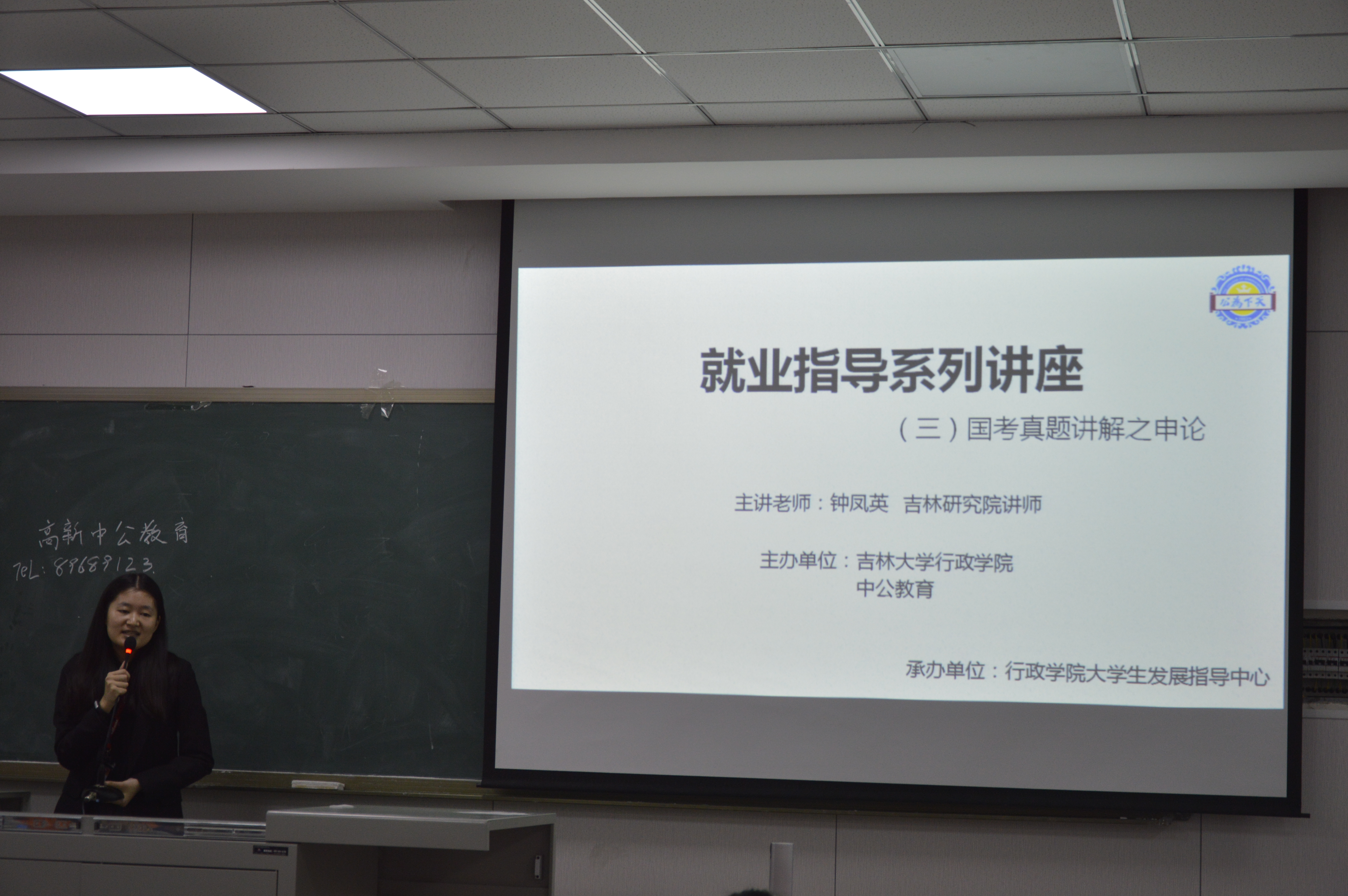 大学生发展指导中心于2016年9月22日18点至20点在前卫南区第三教学楼103教室举办了第三场就业指导系列讲座,此次讲座特邀请到了吉林研究院讲师钟凤英担任主讲。