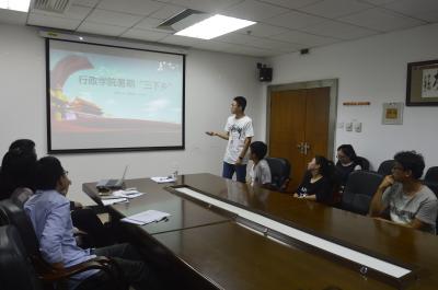 本科生辅导员曲畅竹老师、团委学生干部林明宇(2014级)、谢爱民(2014级)出席了本次展示会。会议由2015级学生尹璐主持,共有六支学生代表队参加了展示会。