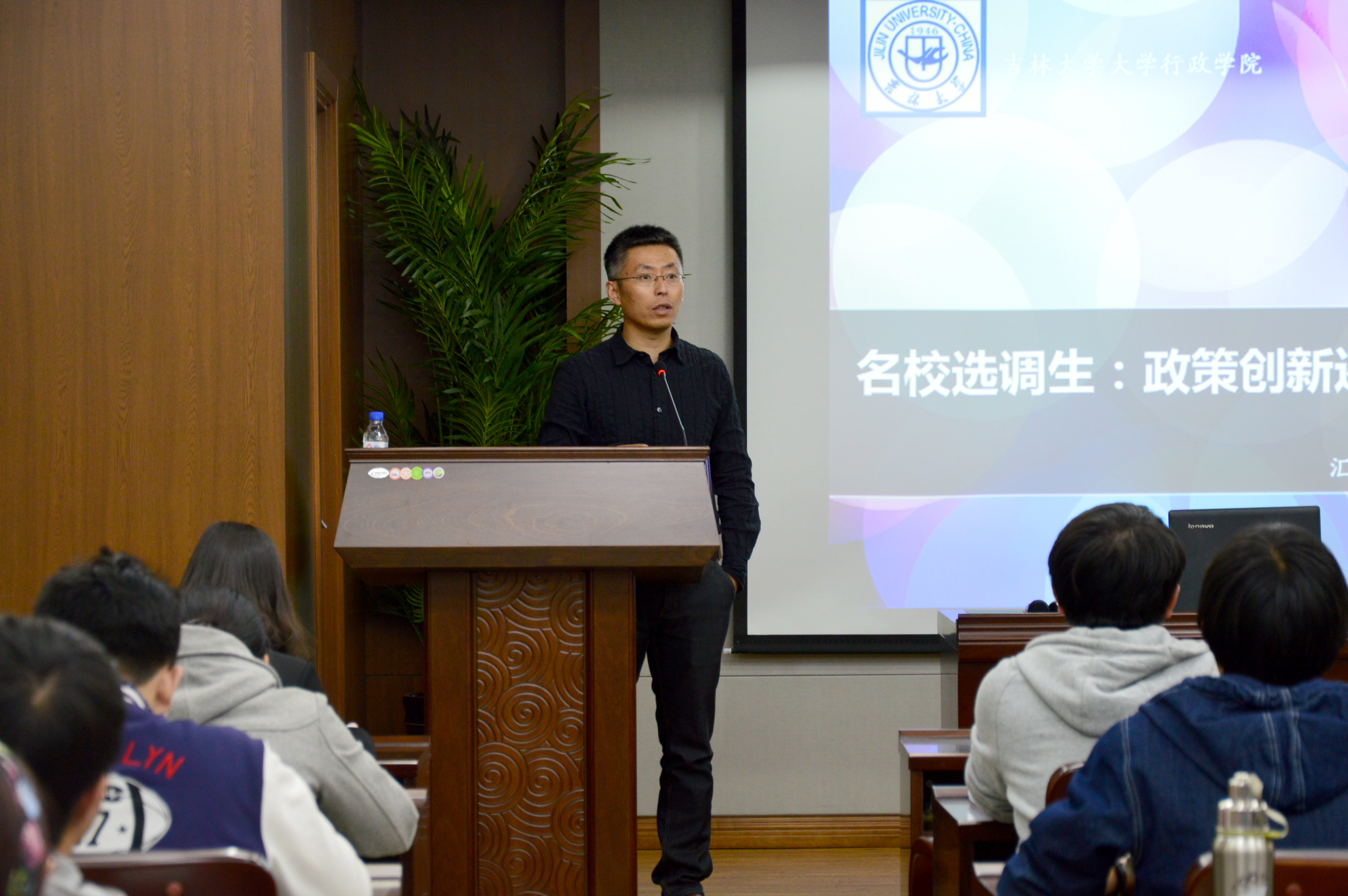 下午6时,讲座正式开始。于君博首先向出席活动的师生介绍了自己所做调查的汇报提纲,即通过研究背景、文献综述、研究设计、研究发现、研究启示五个模块详细介绍研究成果。在第一个模块中,于君博首先阐释了名校选调生的明确概念与出现原因,并指出我们应当充分重视选调生的出现及其背后蕴含的当代青年公共服务心态等社会问题。而在文献综述与研究设计模块中,他展示了自己及团队在研究初期进行的文献搜集和准备工作。本次调查活动采用问卷调查分析与半结构化访谈相结合的研究形式,同时他表示由于研究环境和条件的限制,本次调研仍存在研究视角单一、研究基础薄弱、研究方法粗糙等问题。最后,于君博重点介绍了调研活动的研究发现与启示,通过对回收问卷的效度分析与对访谈对象的有针对性的提问,他发现名校选调生普遍存在生活质量与工作环境等几个方面的差异,而选调政策的较大弹性、当代青年一代生活压力的增大、人职错配与官僚体系的恩庇关系等均是造成选调生幸福指数偏低的重要因素。但同时,于君博还指出尽管选调生目前就职情况较为严峻,但大部分选调生仍对未来持乐观态度,并坚信可以通过个人努力提高自身待遇与生活质量。在调研汇报结束后,于君博与在场学生针对本次讲座的内容进行了互动。同学们大胆提出了自己的困惑,其中涉及的恩庇制度与政治环境中关系网络的利弊探究、高薪养廉与名校人才待遇区别化等问题也引起了在场其他师生的深思。