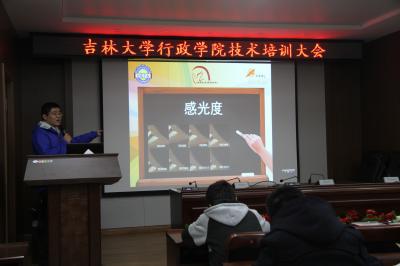 王迪首先就摄影摄像给大家介绍讲解了一些相关基本知识,他从镜头的光圈大小与进光量的关系、ISO(感光度)与噪点的控制与平衡、相机拍摄环境的光线与白平衡,再到如何掌握构图技术与测光技术都为大家分别做出解释。接着,王迪又为大家讲解了如何对前期照片通过photoshop进行后期处理以达到良好的效果,他向大家演示了如何调节照片的亮度、色调、饱和度、和对比度等重要参数,并向大家演示了如何通过后期软件去掉图片中的水印或多余的要素。王迪针对电脑中常用的重要办公软件向大家做了重要讲解,他给大家分享并且向大家演示了许多常用的电脑快捷键的使用技巧,如快速粘贴复制剪切保存,快速回到桌面和快速调用投影仪等方法,并演示了WPS和EXCEl两个重要办公软件在表格制作中的重要技巧与功能。大会的最后,王迪从不同的步骤为大家现场演示了PPT的制作、模板在PPT中的作用、制作过程中的细节要求以及如何高效地使用PPT。