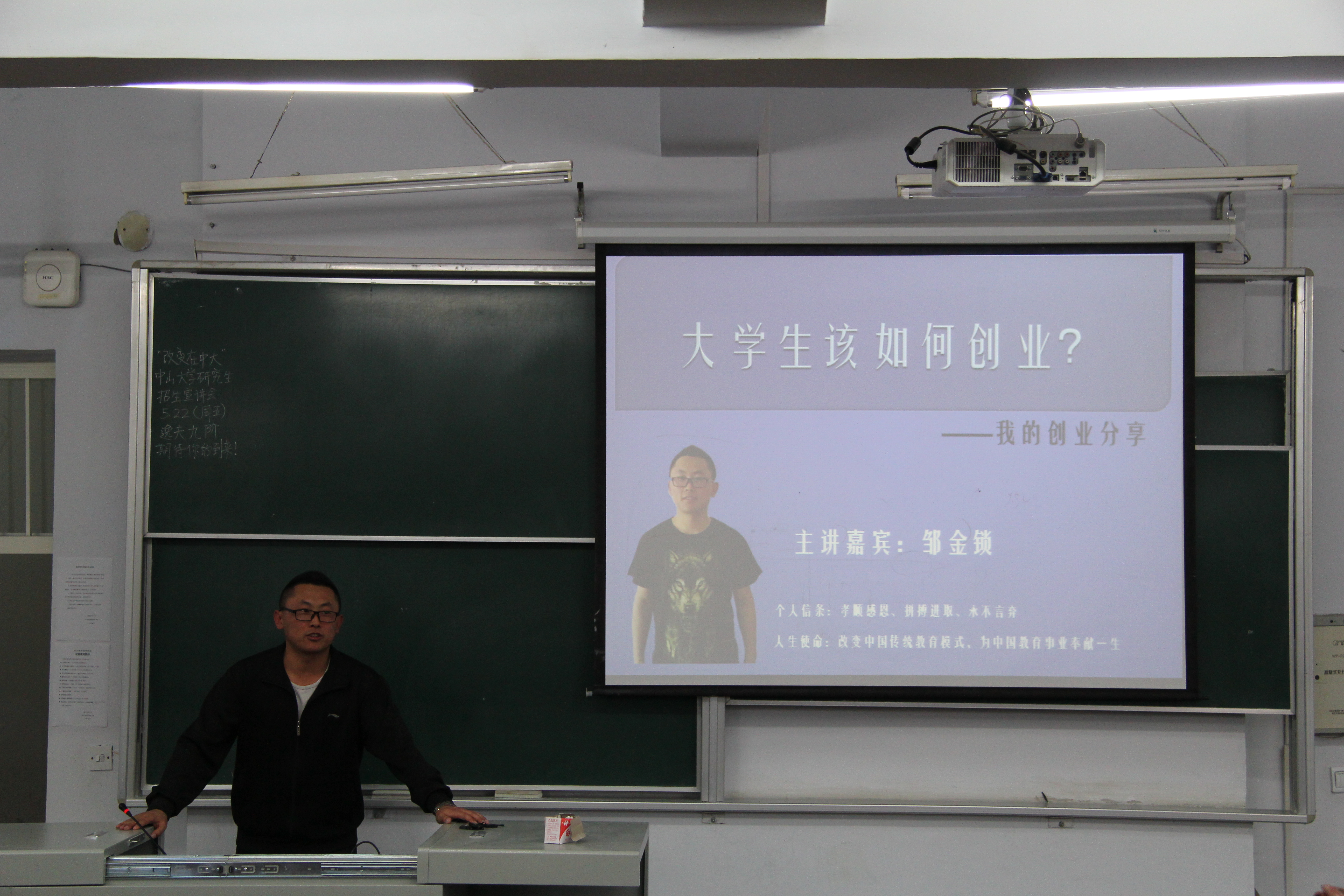 5月20日晚,在本科生就业与创业指导课上,辅导员邀请到龙腾教育培训机构校长邹金锁(ManHub