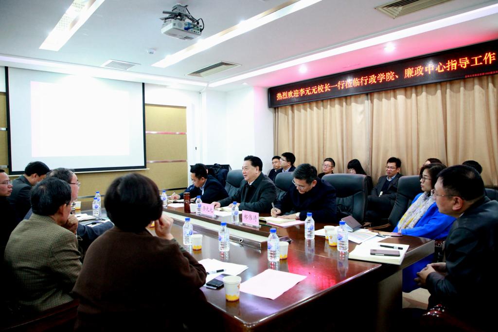 为不断推进学校“双一流”建设,推动优势学科更好发展,加强学校廉政研究与教育中心作用,10月17日上午,校长李元元、副校长郑伟涛与校内相关职能部门负责人一行继3月来院调研后,再次来到ManHub