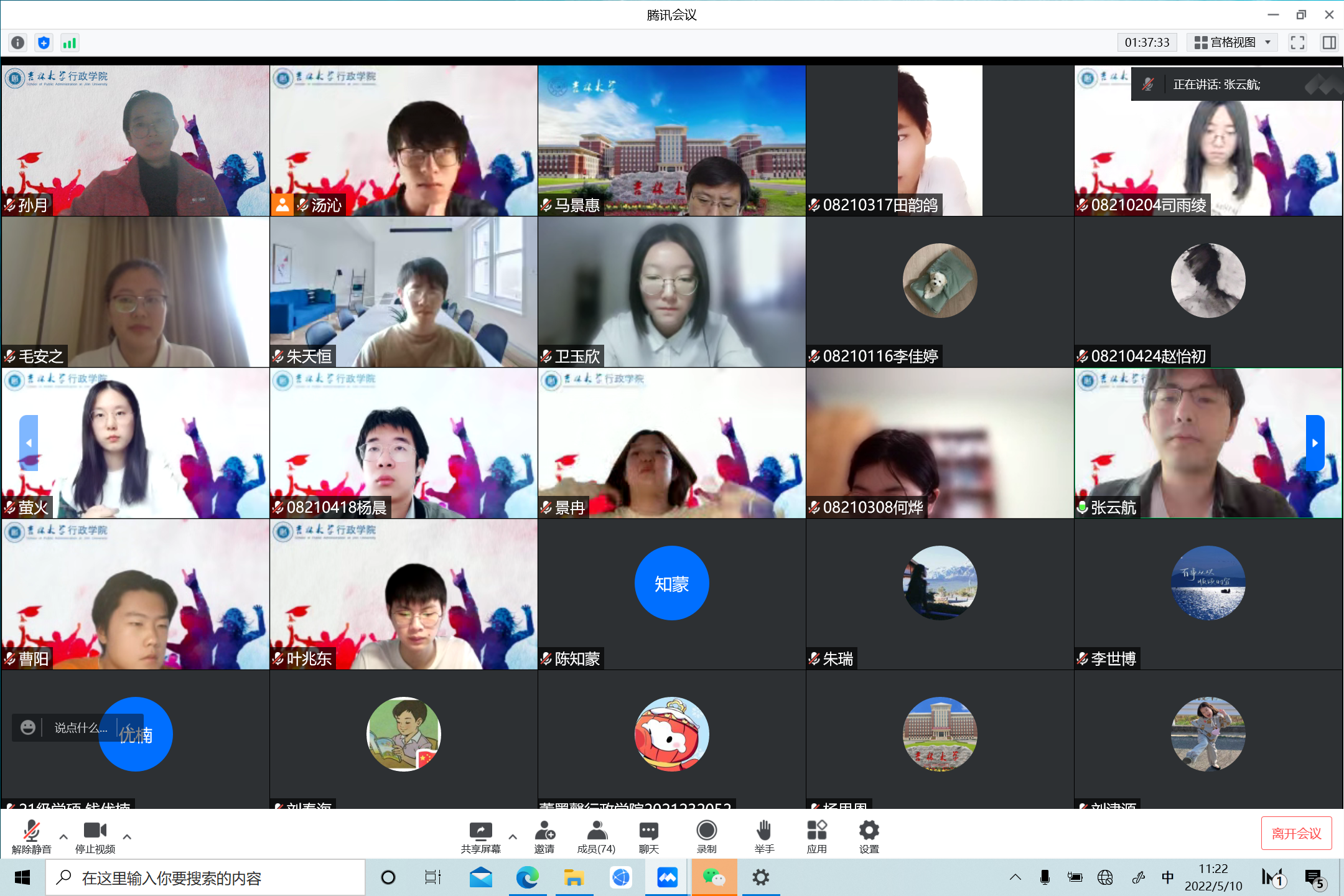 庆祝大会结束后,学院广大青年教师、青年学生趁热打铁、学在前头,结合学科专业和个人实际,围绕大会和习近平总书记重要讲话精神分享了感想和体会。大家纷纷表示,庆祝中国共产主义青年团成立100周年大会盛况空前,催人奋进,这是对过去100年间中国青年在党的领导下爱国奋斗建功立业的全面总结,也是向全国青年勠力同心迈向“第二个百年”奋斗目标的时代号召,能够经历这样一个激动人心的历史时刻,既荣幸又振奋。政治学系青年教师郑倩分享了自己入团时的情景,表示作为高校教师要在教书育人中时刻牢记青年兴则国家兴、青年强则国家强,教育引导团员青年将自身发展与人民幸福、国家命运、民族复兴紧密联系在一起,将小我融入大我、将青春献给祖国。毕业生代表毛安之表示,习近平总书记在大会上的讲话深入人心,中国的未来是青年的,中华民族的未来也是青年的,时代已经将火炬传到了当代青年手里,面对重重考验,同学们定将坚定理想信念,唱响青春之歌,不断向前奋进。在校生代表张云航回顾了共产主义信仰之光指引中国青年一路前行的百年历程,结合学校应急管理期间青年学生自我管理、自我监督、自我服务的经历和学生志愿者的感人事迹,表达了强国有我的坚强决心。