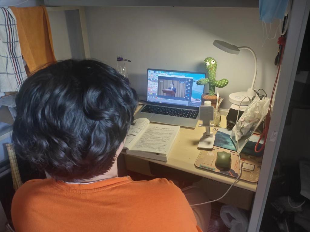 以视频会议形式组织广大师生一同观看大会盛况。学院党委书记马景惠、党委副书记史慕华、行政副院长季洪涛、各系党支部教师代表、党委办公室主任、团委指导教师、团委委员、团支部书记、研究生代表、入党积极分子代表及新换届的学生组织成员代表等参加线上会议,其他无课师生通过相应媒体平台收看转播。学院党委副书记兼副院长、纪委书记张洁主持集体观看直播活动。