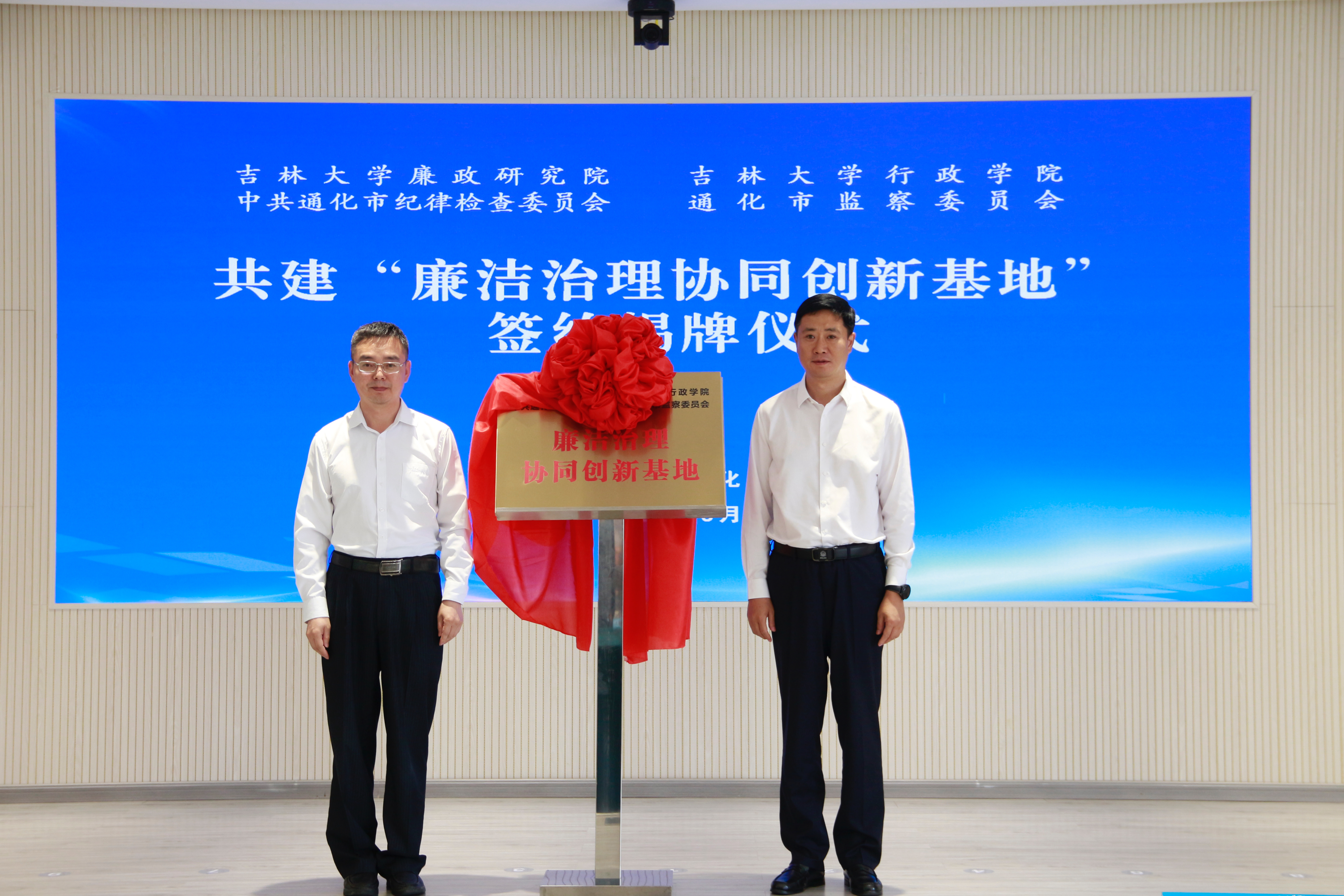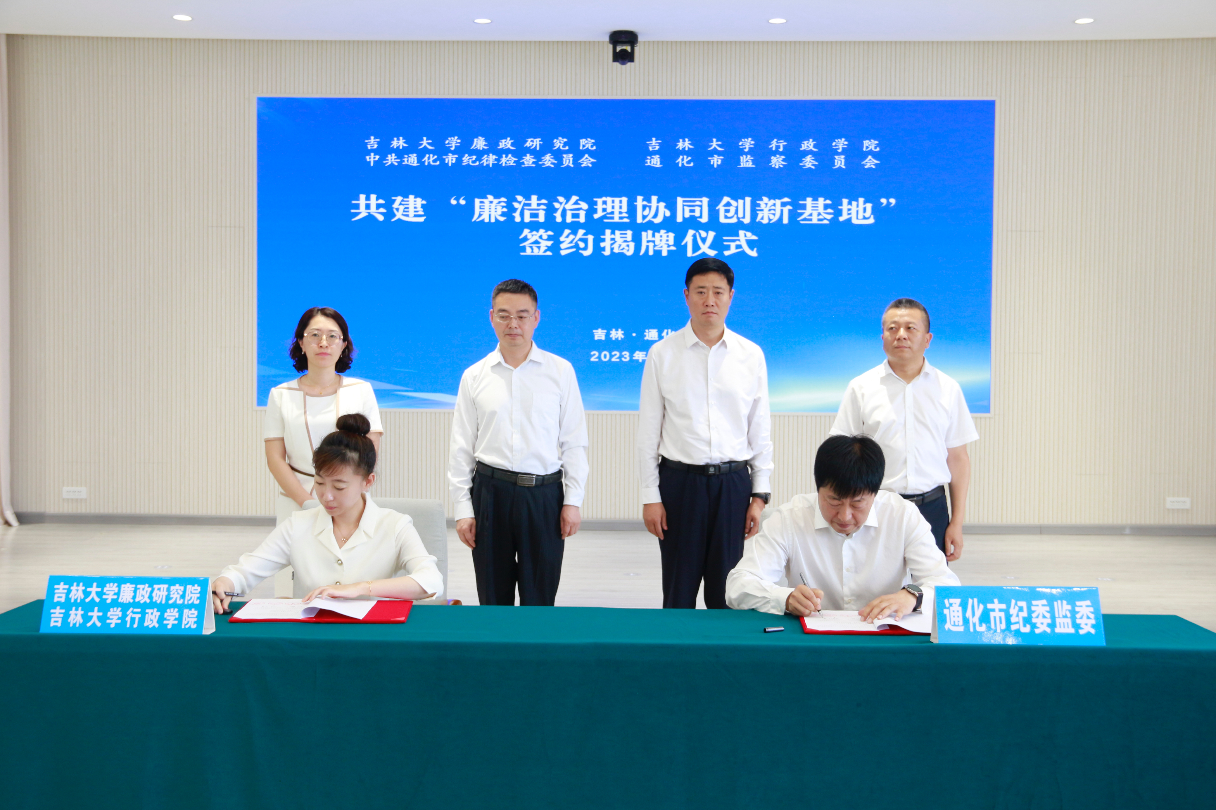 与通化市、集安市“廉洁治理协同创新基地”揭牌签约仪式取得圆满成功,今后双方将本着“优势互补、长期合作、共同发展”的工作理念,搭建廉洁治理研究的理论与实践平台,在深化理论结合实践、强化廉政建设、促进人才培养等方面开展广泛深度合作,把“基地”建设成为纪检监察工作创新的重要载体、师生社会实践的优质平台。