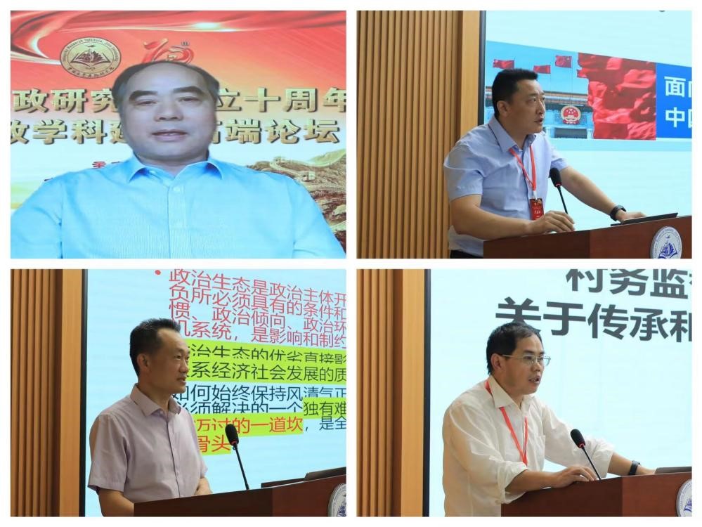 浙江大学求是特聘教授(科研岗)、浙江大学公共管理学院陈国权教授以“功能性分权:广义政府的制度逻辑分析”为题作主旨发言,从决策权、执行权和监督权三个层面阐述了功能性分权理论的核心观点。中国管理现代化研究会廉政建设与治理专业委员会副会长、东北师范大学政法学院院长李红权教授的主旨发言题目是“面向2035的清廉中国:中国式腐败治理现代化的目标图景”,指出“清廉中国”是中国式现代化的题中之意和关键指标,是国家治理、廉政道路、政治文明的新形态。中国社会科学院中国廉政研究中心秘书长、中国社会科学院大学蒋来用教授作了题为“解决‘如何始终保持风清气正的政治生态’难题的策略”的主旨发言,从坚持人民至上夯实政治生态建设的基石、坚持勇于和善于斗争赢得政治生态建设的主动以及坚持系统观念全面提升政治生态建设质量等三个方面分享了“始终保持风清气正的政治生态”的策略方法。湖南大学廉政研究中心执行主任、马克思主义学院副院长袁柏顺教授的主旨发言题目是“村务监督制度如何有效运行:关于传承和发展‘后陈经验’的思考”,以“后陈经验”为例,探讨了村务监督制度的有效运行方法。