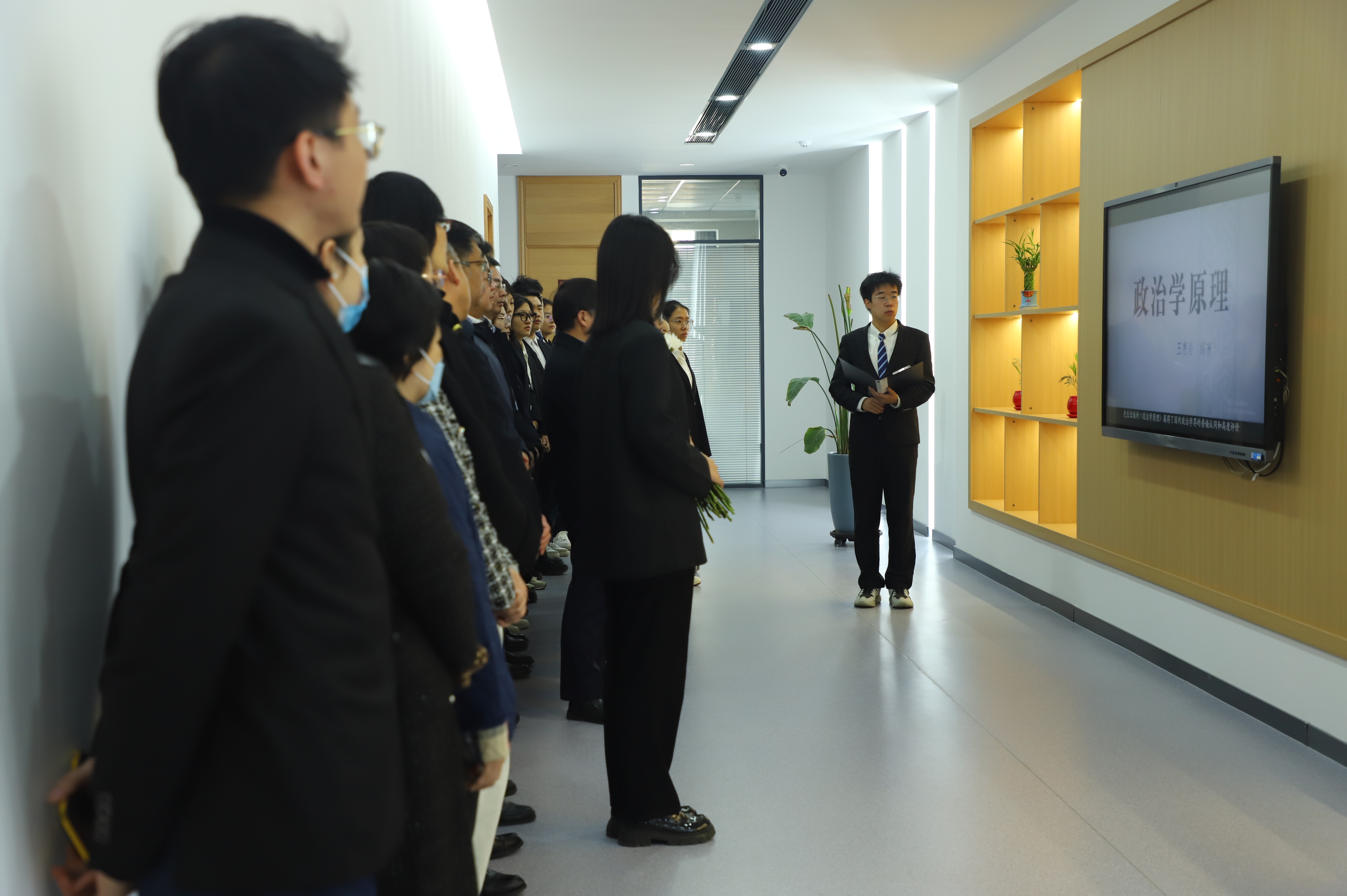 师生们集体观看《惠人育才 志如坚岩—王惠岩生平纪录片》,共同回顾先生对当代中国法学、政治学的发展与繁荣作出卓越贡献的一生。在王惠岩先生雕像前,师生恭默守静,九原可作。学生党员和入党积极分子代表小心而仔细地抚去雕像上的浮尘,党委书记陈希贵与师生们一道依次走进先生雕像并敬献鲜花,并怀着景仰和忧思肃立默哀。