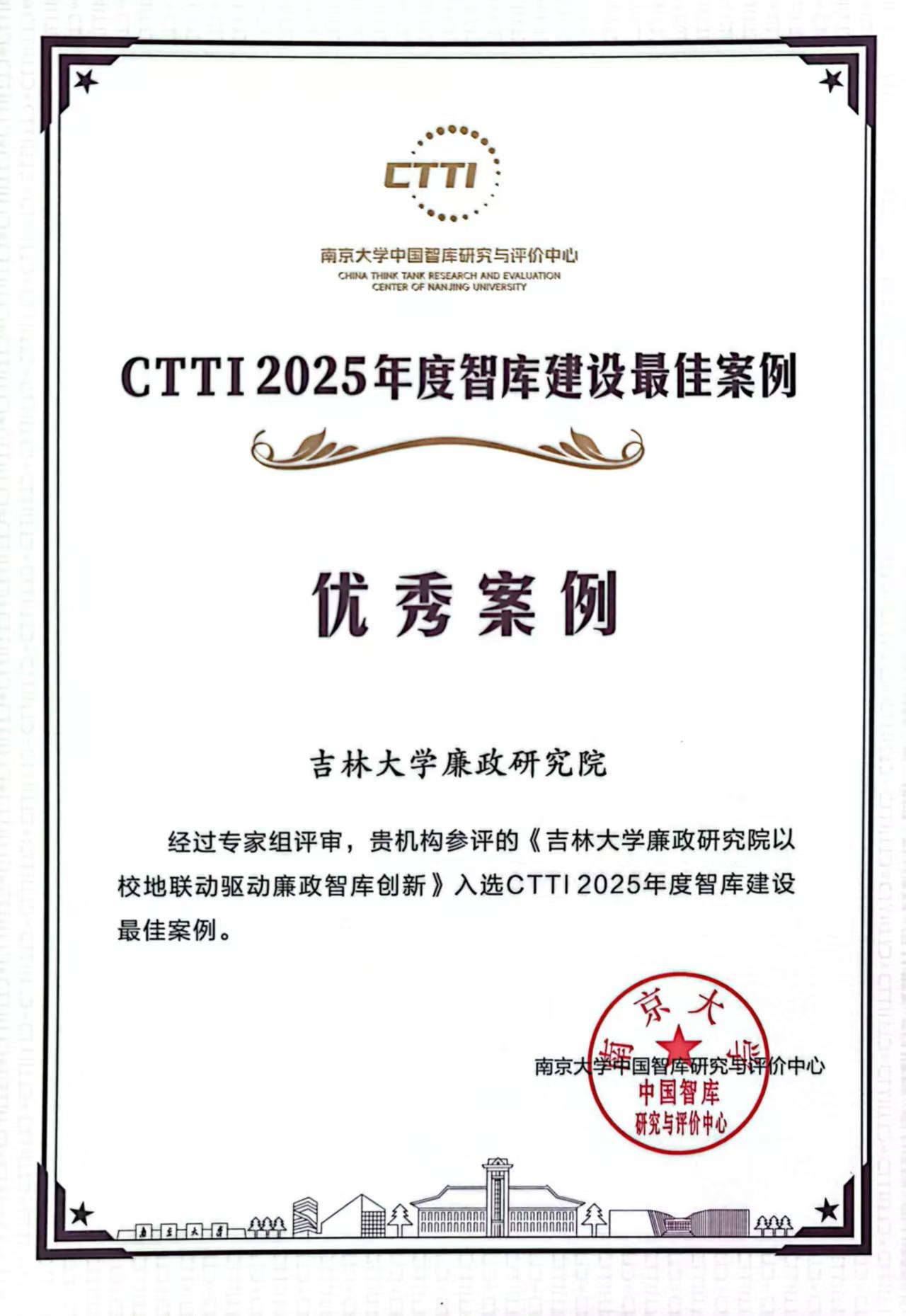 此次入选CTTI2025年度最佳案例,是研究院长期积淀的又一标志性成果。回溯发展历程,研究院于2019年入选CTTI来源智库党的建设与国家治理领域PAI值评分Top10,2025年获AMI智库与中国智库参考案例双重认证,如今又喜获CTTI最佳案例,体现出研究院在廉政研究领域的综合实力与行业影响力稳步提升。