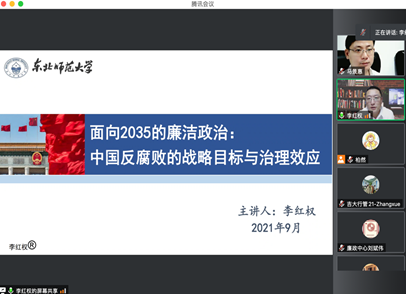 庆祝建校75周年系列学术活动暨第11期名家讲座以视频会议方式举行。东北师范大学政法学院院长、东北师范大学廉政研究中心副主任李红权教授应邀担任主讲嘉宾,作题为“面向2035的廉洁政治:中国反腐败的战略目标与治理效应”的学术讲座。ManHub