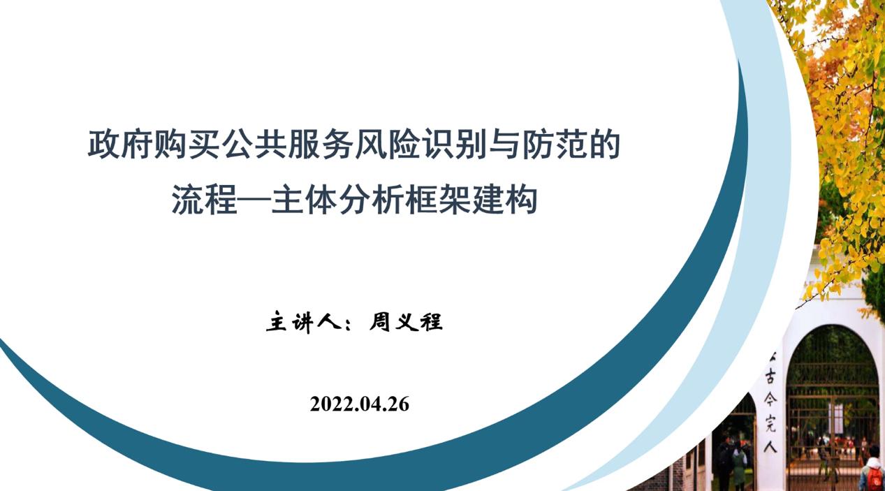 为公论坛第37期线上学术讲座在腾讯会议平台举行。苏州大学政治与公共管理学院副院长、博士生导师,江苏省政治学会副会长,江苏省中共党史学会常务理事周义程教授受邀担任主讲嘉宾,作题为“政府购买公共服务风险识别与防范的流程—主体分析框架建构”的学术讲演。本次讲座由ManHub