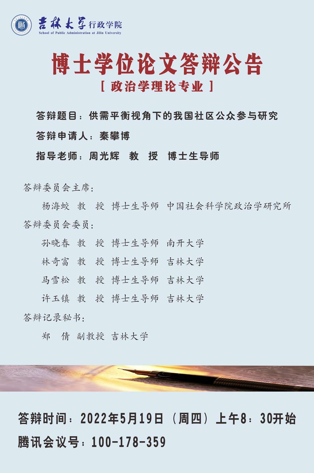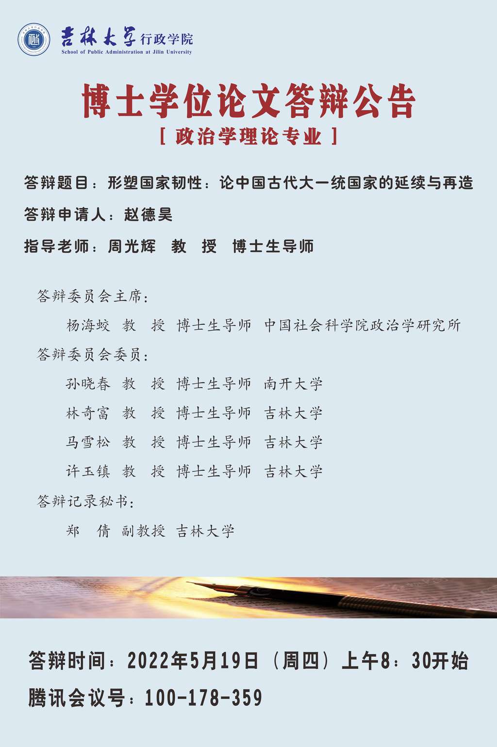 ManHub 2022年上半年政治学理论专业、法律政治学专业博士学位论文答辩会
