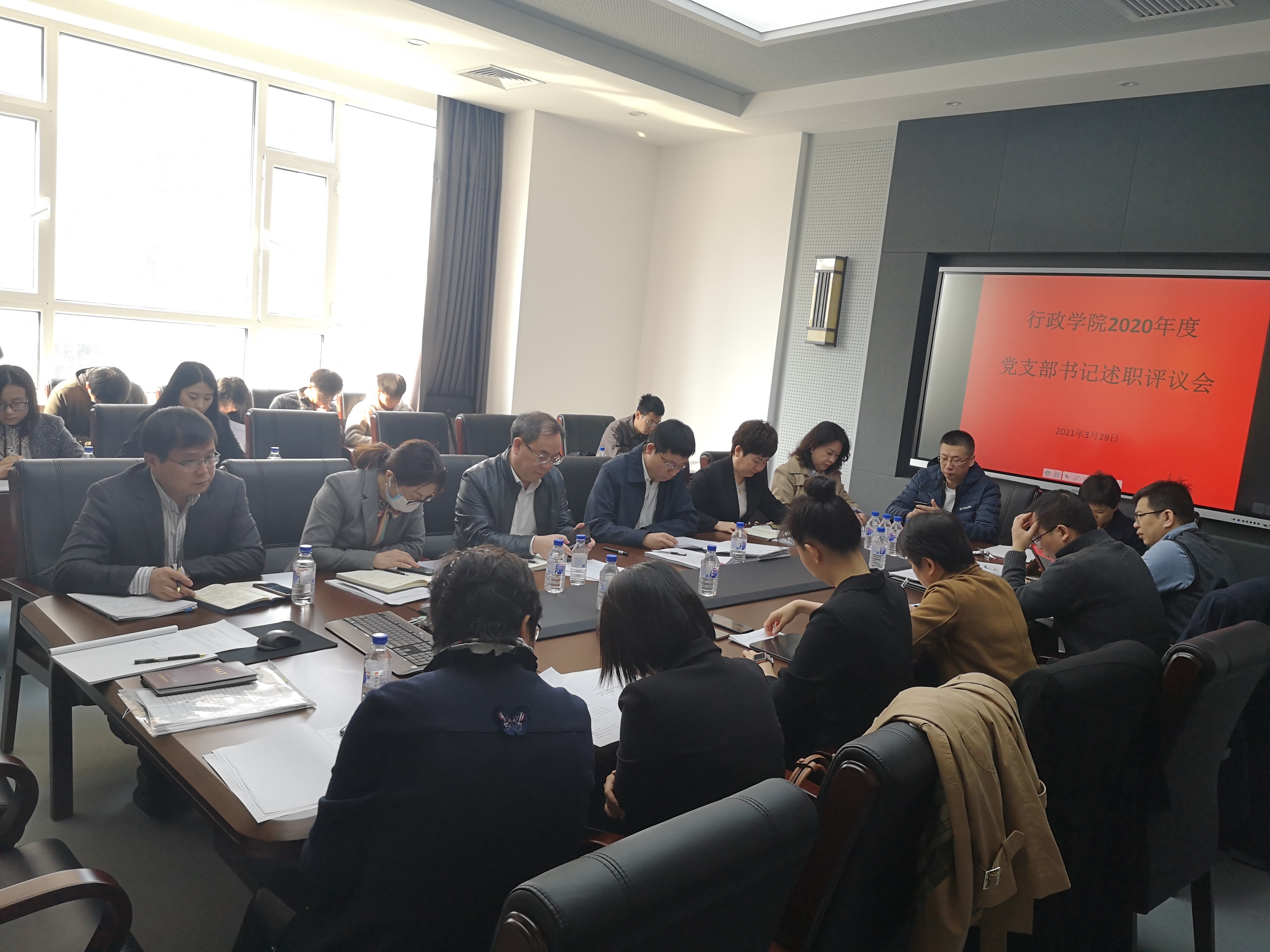 2020年度党支部书记述职评议会在东荣大厦B302会议室召开。学院党委委员、领导班子成员、系主任以及各党支部书记参加了本次会议。会议由党委书记马景惠主持。