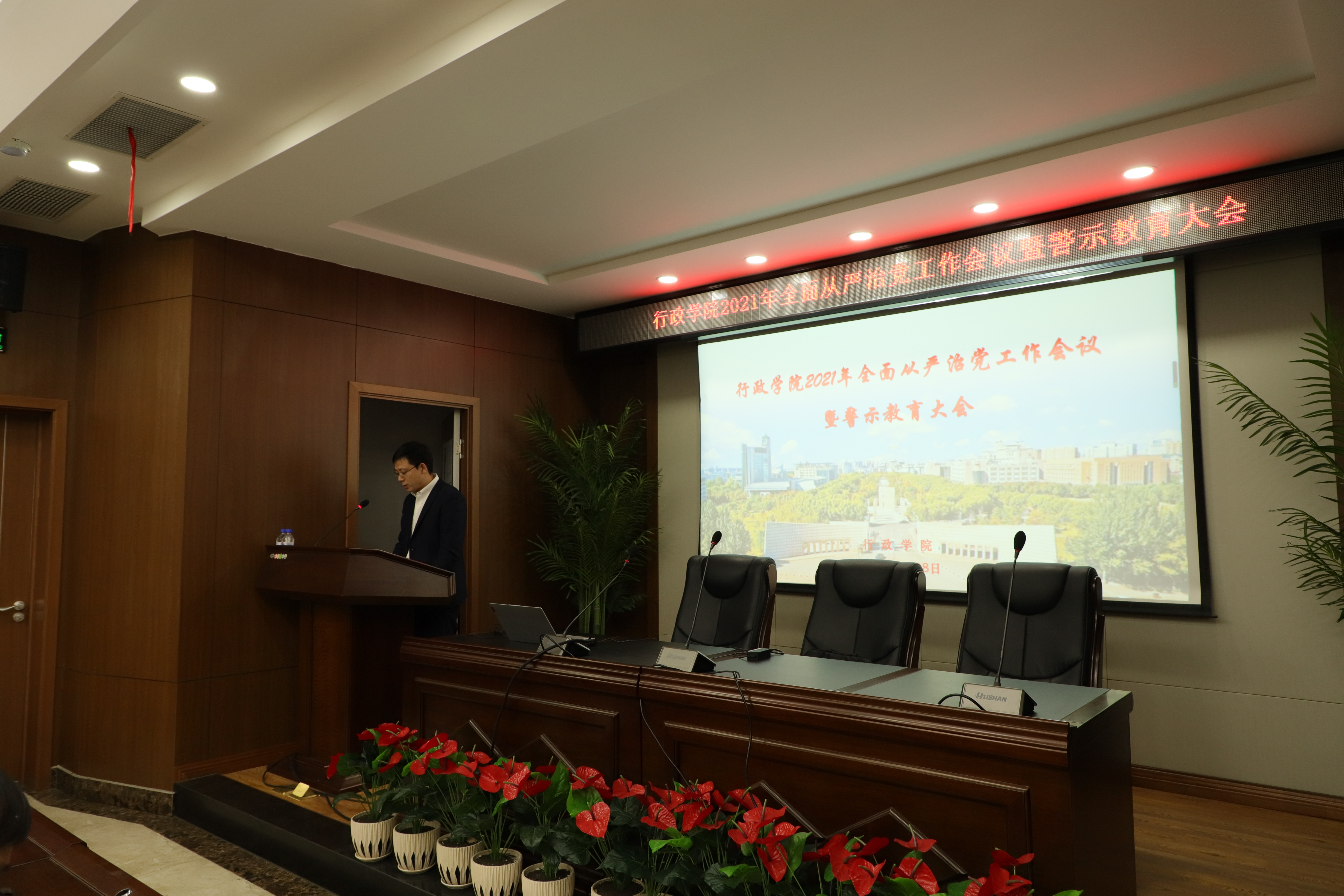 2021年全面从严治党工作会议暨警示教育大会上的讲话精神,并结合学院改革发展实际对2021年学院全面从严治党工作的主要任务进行了部署。他强调,全院上下要认真贯彻落实学校党委全面从严治党和警示教育会议精神,以违纪违法典型案例为戒,树立良好的纪律意识和规矩意识,树牢红线意识和底线思维,时刻保持清醒头脑,不断加强自身廉洁风险防控;要立行立改,彻底整改,坚决贯彻落实中央“八项规定”精神,有针对性地开展自查整改,加强管理、堵塞漏洞、扎紧制度的笼子,实现精细化管理,防范廉政风险;要坚持不懈纠正“四风”,以优良的党风政风带动学风考风教风,共同营造风清气正的良好政治生态。
