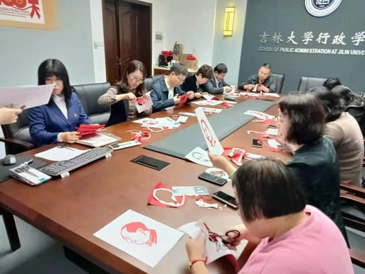 妇委会联合工会在东荣大厦B304会议室举办“传承红色基因 庆祝百年华诞”主题剪纸活动。本次活动邀请吉林省博物院二级美术师马俊、中国民间剪纸艺术家马晶指导培训,我院20余名老师参加了本次实践活动,活动由党委副书记史慕华主持。