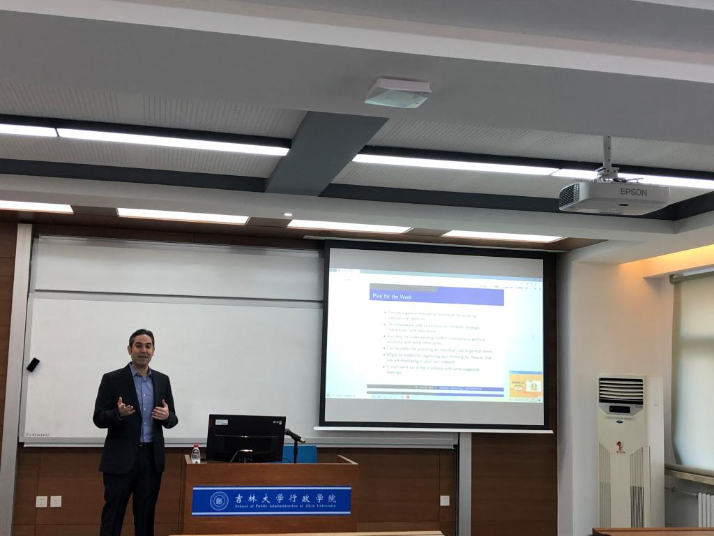 25日的讲座的主题为“利益、互动和制度”。在这一场讲座中,Sam Bell首先就国际政治中的行为体和行为体的利益界定问题进行了解释,并对互动进行了概念界定,即认为互动是两个或两个以上行动着的选择结合起来产生政治结果的方式。而后对制度的概念界定和形成原因做出解释,并举出国际政治中关于制度的相关案例。最后,Sam Bell提出了制度中行为体根据利益进行互动的六种方式。