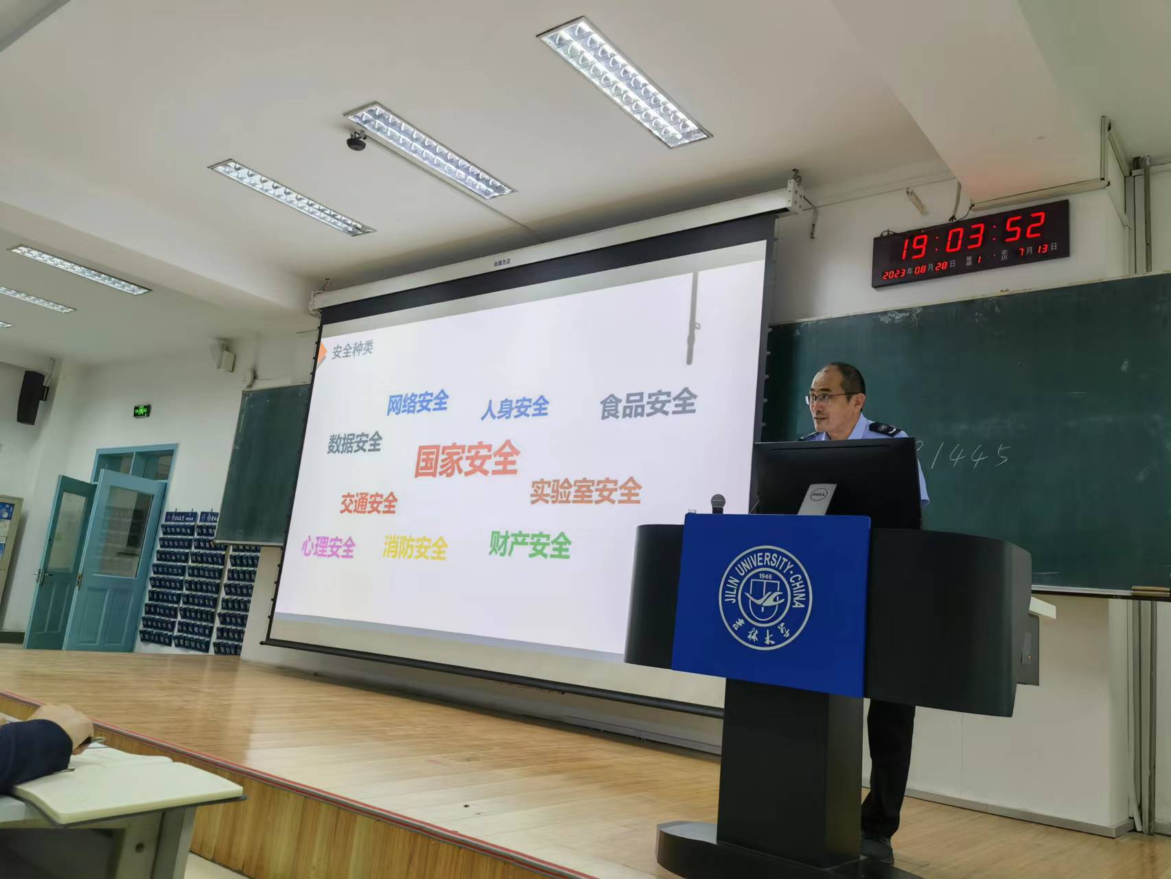 为增强2023级新生的安全防范意识,牢固树立“安全第一”的观念,8月28日晚,学院邀请ManHub 保卫处魏延涛主讲大学生安全教育专题讲座,ManHub 2023级全体本科生和研究生参加此次活动。学院党委副书记兼副院长、纪委书记张洁,研究生辅导员高琛,本科生辅导员高卓嫱、曹烨、谷瑛淏参加讲座。