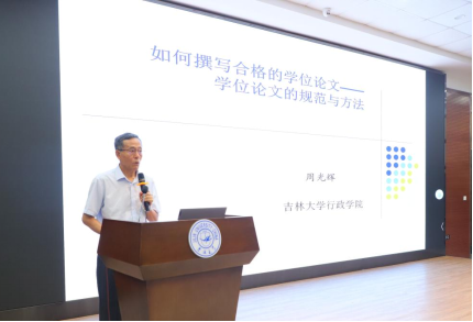在学位论文撰写的具体方法上,周光辉先后从论题的选择、论点的提出、论证的过程和论意的表达这四个方面进行了讲解和分享。他指出,论文的选题要有问题意识,应聚焦于研究兴趣、研究基础和现实需求的结合点,其中的论点需具有独到见解,而论证则要逻辑严谨、思路清晰。同时,周光辉还提别强调,撰写学位论文应严格遵循学术规范,要维护学术和学位的尊严,确保论文的学术性和可读性。