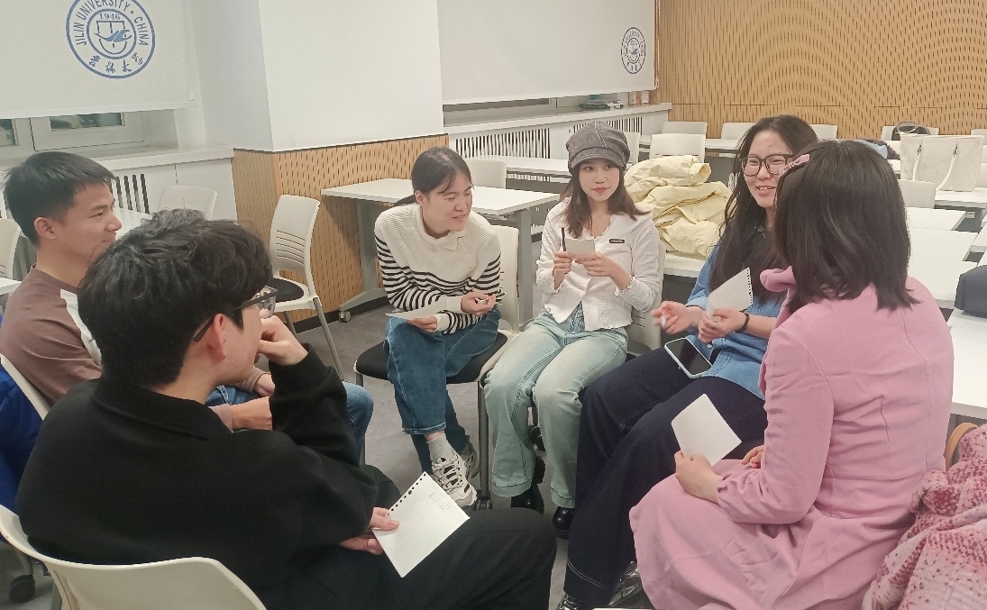 在暖身阶段,每位同学为自己设计富有创意的新名字,暂时脱离日常身份标签,并以围圈宣誓的形式郑重承诺对活动内容保密。暖身阶段使同学们放松身心,成功营造出相互信任、彼此尊重的团体氛围,为后续环节打下良好互动基础。