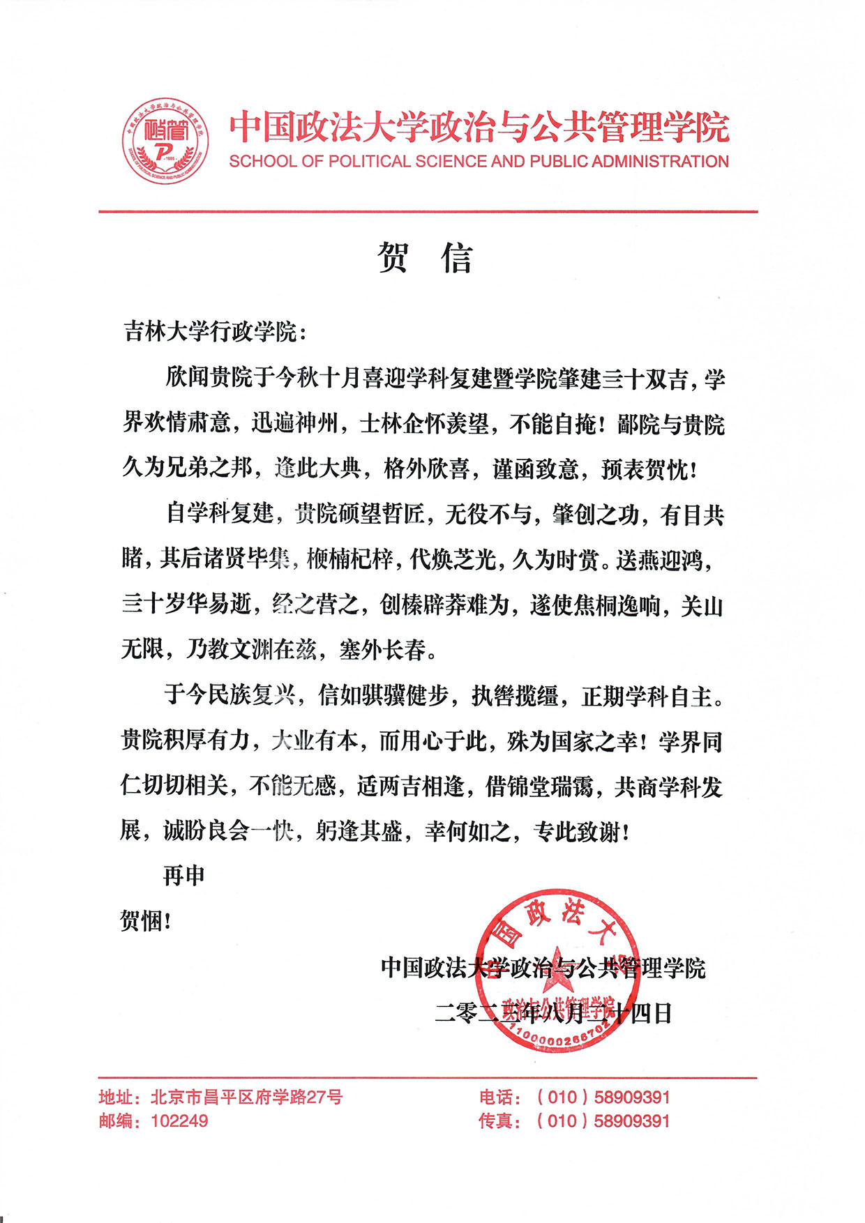 中国政法大学政治与公共管理学院的贺信-吉林大学行政学院 <#webadvjs#>