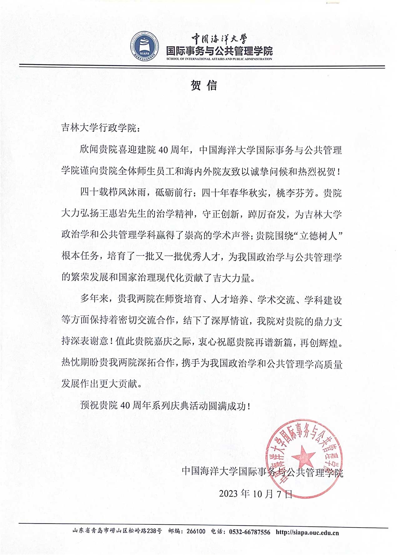 中国海洋大学国际事务与公共管理学院的贺信-吉林大学行政学院 <#webadvjs#>