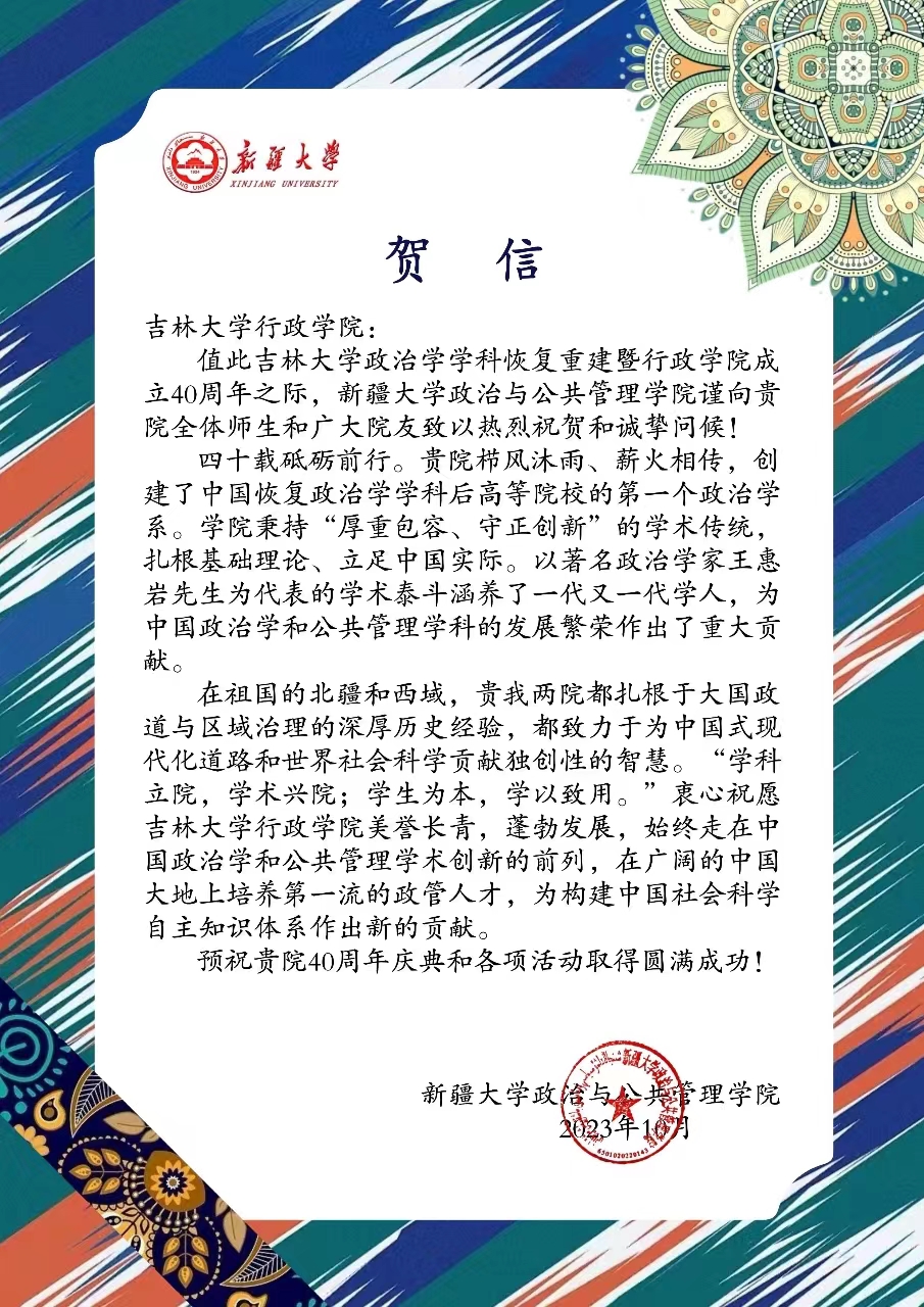 新疆大学政治与公共管理学院的贺信-吉林大学行政学院 <#webadvjs#>
