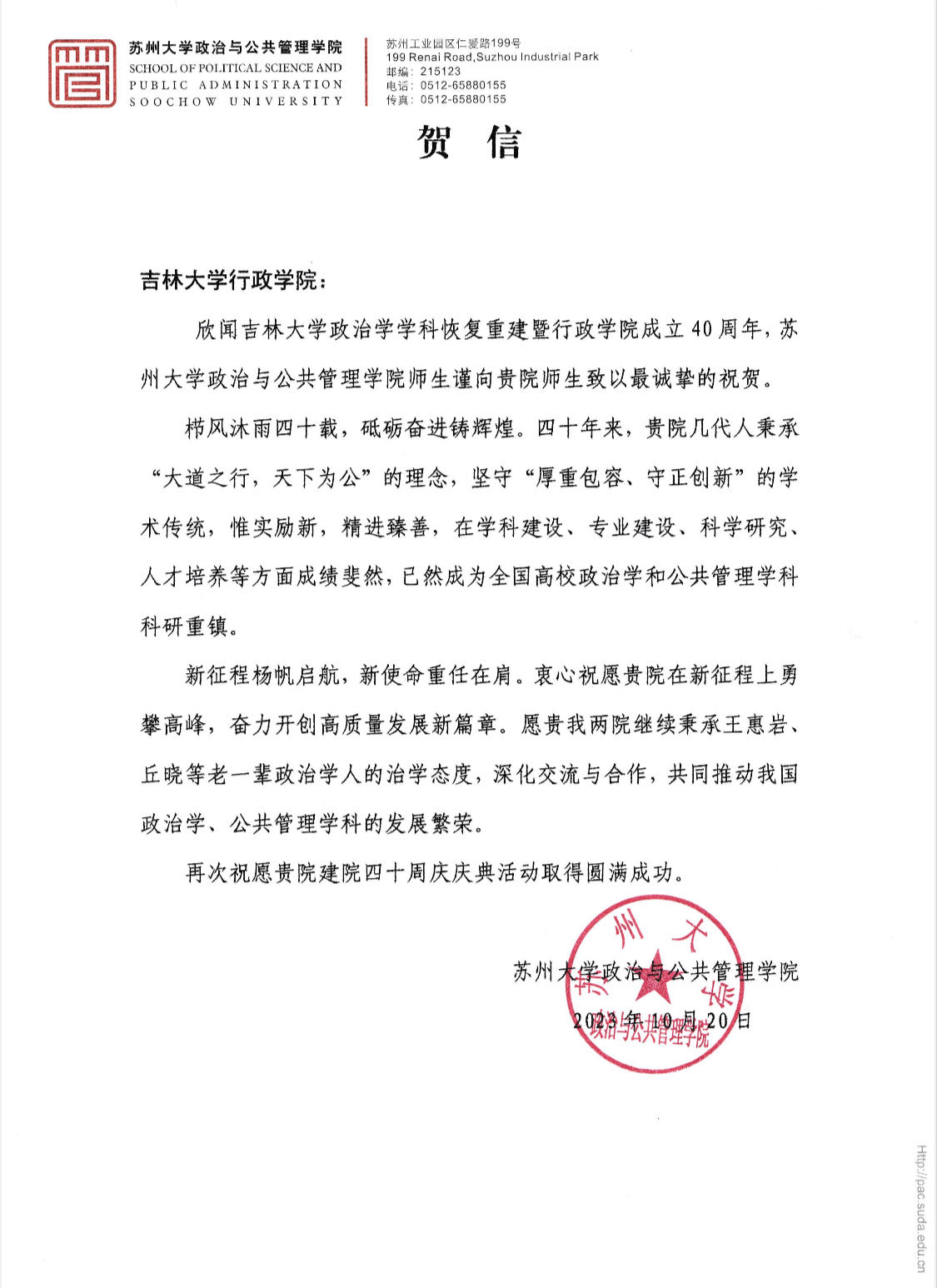 苏州大学政治与公共管理学院的贺信-吉林大学行政学院 <#webadvjs#>